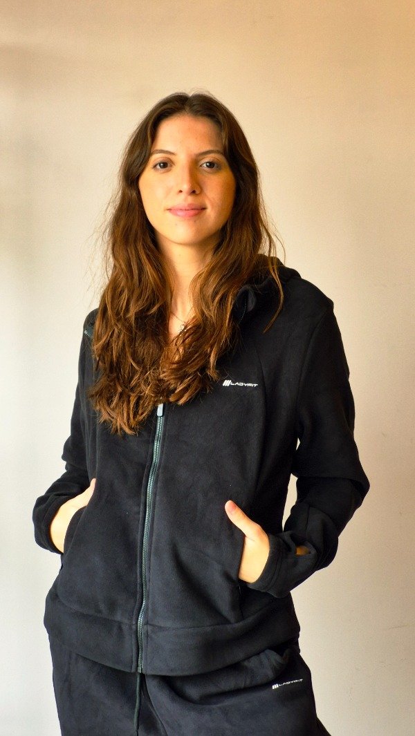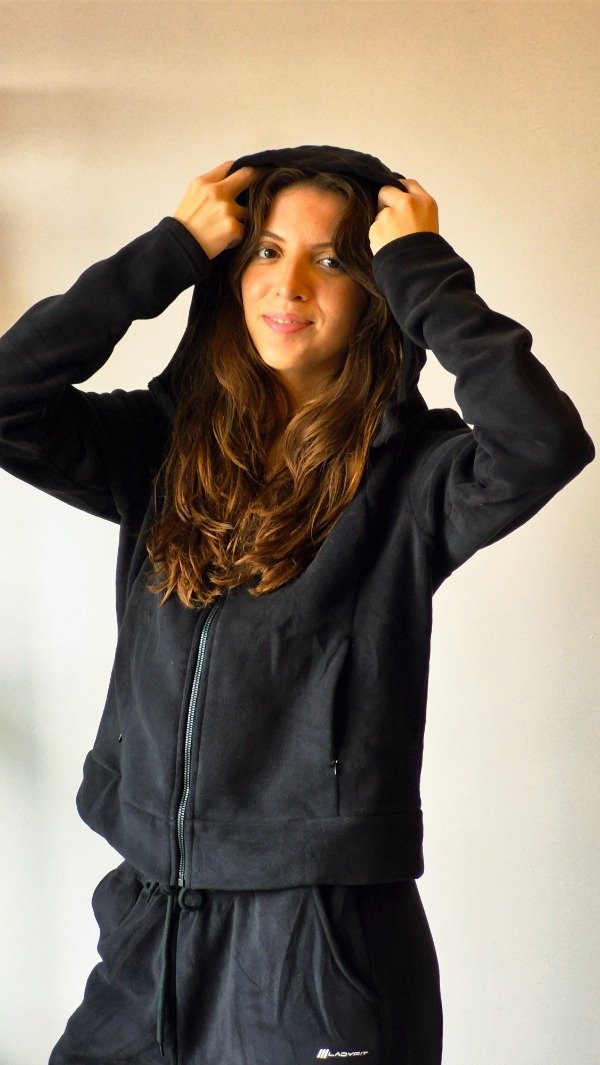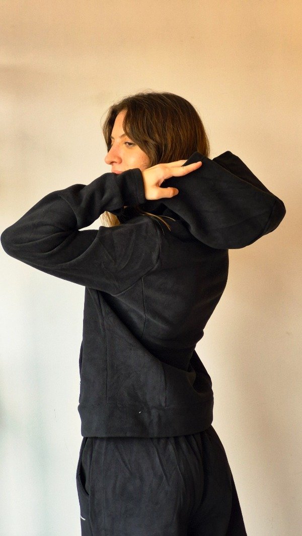 Tela soft de doble espesor, de mayor grosor y tacto premium. Su interior presenta una mano extremadamente suave, que aporta abrigo, confort y una sensación pesada de alta calidad. Campera con capucha y cuello alto integrado, diseñada para brindar abrigo y estilo. Presenta aberturas para el pulgar en los puños, bolsillos internos funcionales con cierre invisibles y recortes delanteros curvos que aportan una silueta dinámica. El bajo curvo aporta una terminación moderna.