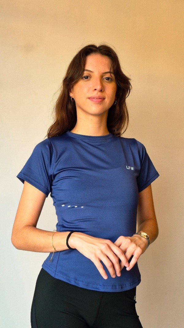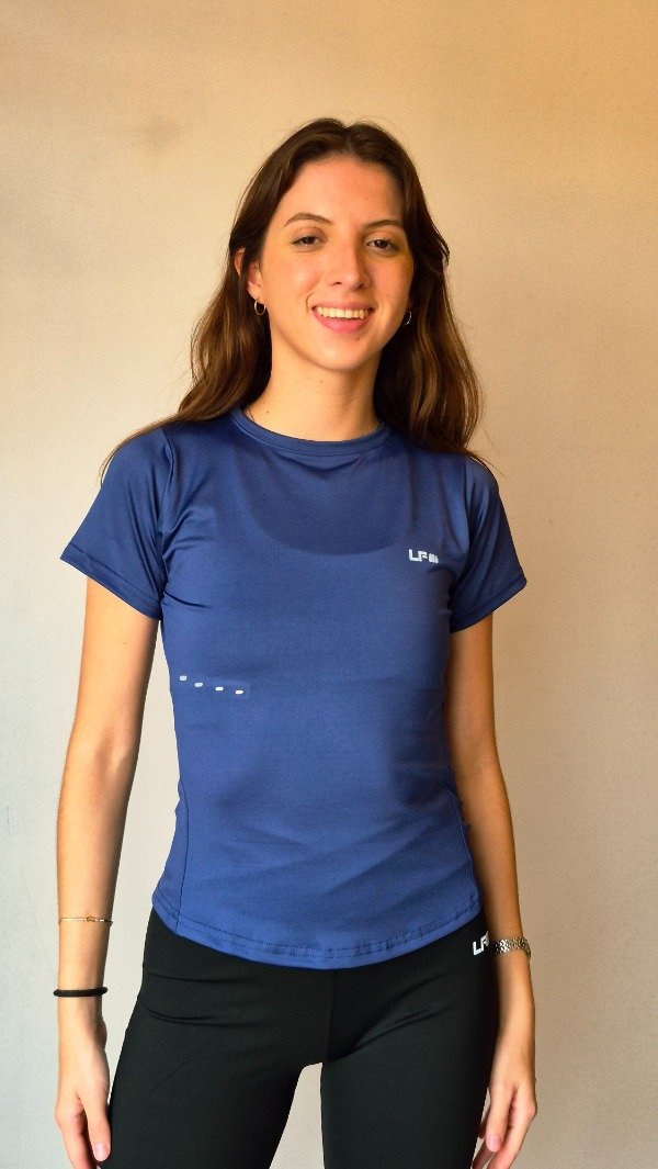 Lycra, de silueta ceñida, manga corta y bajo curvo, con espalda con recorte tipo )( y detalles de vinilo en el centro de la espalda y la cintura derecha delantera.