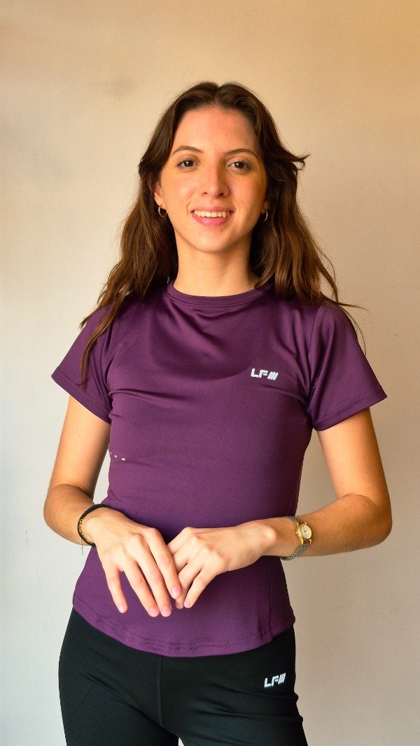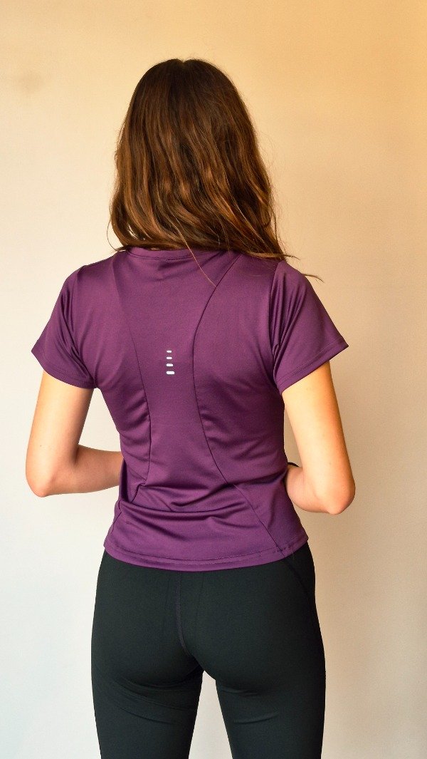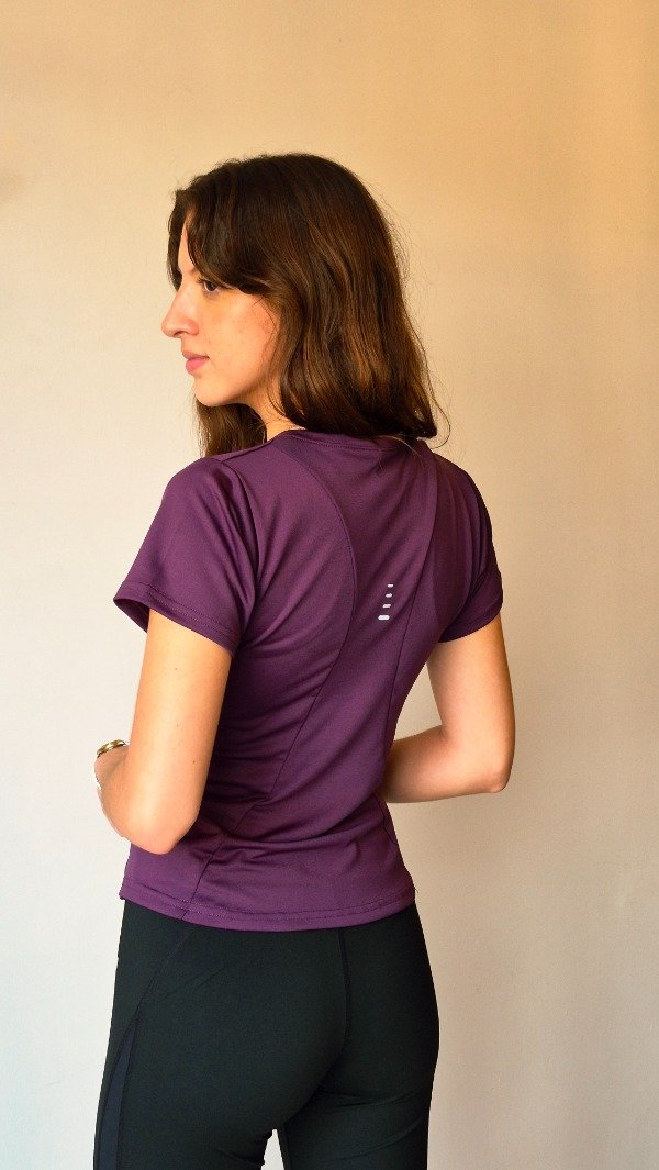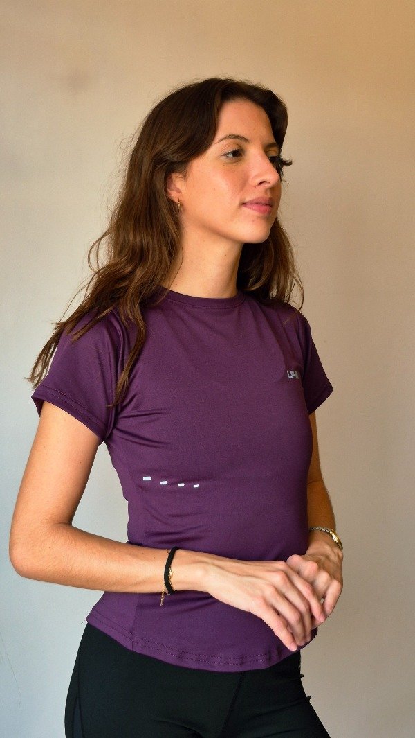 Lycra, de silueta ceñida, manga corta y bajo curvo, con espalda con recorte tipo )( y detalles de vinilo en el centro de la espalda y la cintura derecha delantera.